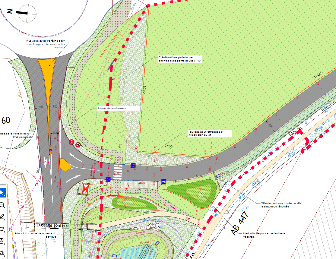 Le Département continue de procéder, depuis fin novembre, à des travaux d'accroche sur la voie du Parc du stade (RD135) au niveau du giratoire de Flumir.